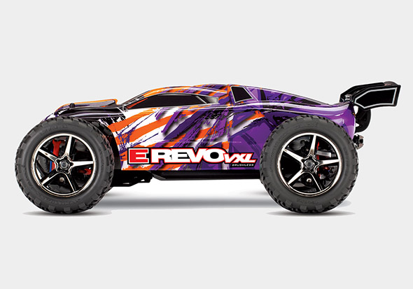 1/16 E-Revo VXL TSM jest w pełni złożony z systemem sterowania R/C, bezszczotkowym układem napędowym Velineon, malowaną karoserią, przyklejonymi oponami i szczegółową instrukcją. Traxxas dołączył również pakiet zasilający i ładowarkę akumulatorów, co sprawia, że E-Revo VXL jest całkowicie gotowy do jazdy.