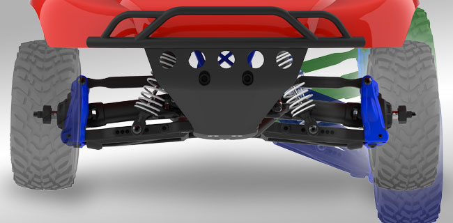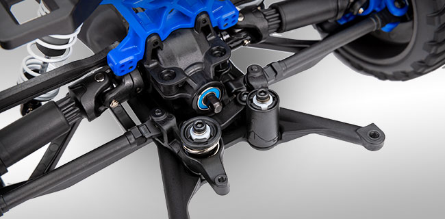 Slash 4X4 ma ogromne ilości pozornie bezdennego, ultra-miękkiego skoku zawieszenia, które pochłania skoki i zapewnia niesamowitą kontrolę na nierównym torze. Zoptymalizowane pod kątem wydajności komponenty zawieszenia zapewniają maksymalną artykulację bez wiązań i zakłóceń.