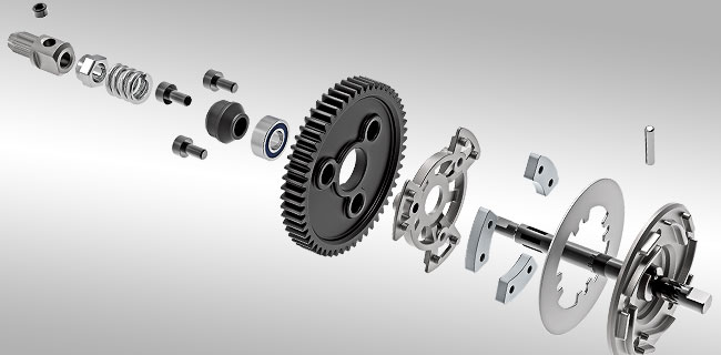 Opatentowana konstrukcja sprzęgła poślizgowego wykorzystuje półmetaliczne okładziny cierne i żebrowaną aluminiową tarczę dociskową do rozpraszania ciepła i zapewnienia stałej kontroli trakcji. Sprzęgło poślizgowe można łatwo regulować bez konieczności demontażu, a unikalna konstrukcja z trzema klockami jest sprawdzona w najmocniejszych pojazdach Traxxasa.