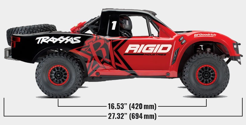 Pro-Scale™ to kolejna innowacja Traxxas'a, która oddaje prawdziwy realizm i łączy go z ekstremalną mocą napędu 6S LiPo i prędkością 80km/h. Unlimited Desert Racer wiernie oddaje wygląd i charakter Trophy Trucks i Unlimited Trick Trucks, czego efektem jest podróż po pustyni z maksymalną prędkością.