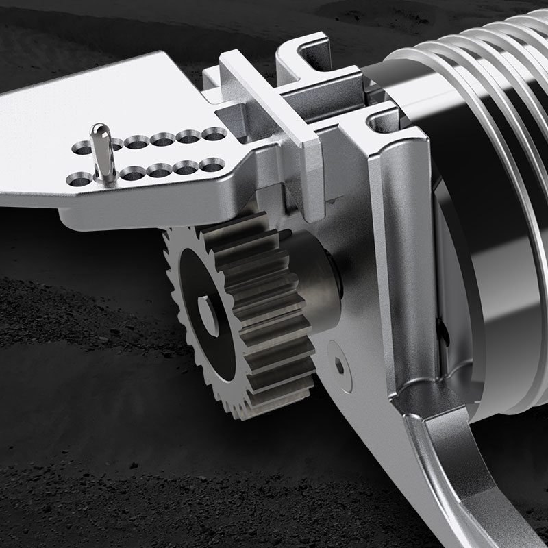 Stalowe koła zębate zapewniają ekstremalną wytrzymałość w trudnych warunkach terenowych.