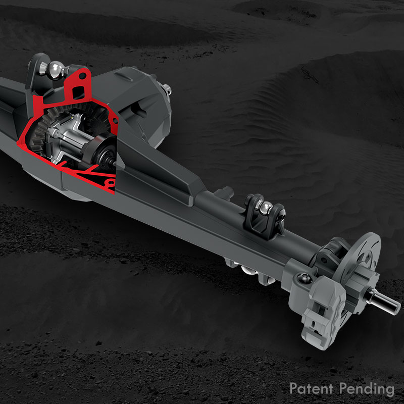 Mocny - wielowypustowy wał napędowy przenosi moc na przedni mechanizm różnicowy, podczas gdy tylny napęd jest przenoszony przez aluminiową i stalową półoś o stałej długości. Realistyczny wałek napędowy o stałej długości zapewnia lepszą wytrzymałość, zmniejsza luz w układzie przeniesienia napędu i obniża masę obrotową w celu poprawy reakcji.