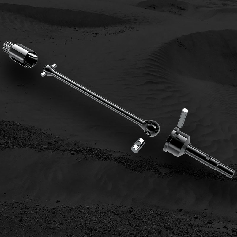 Wytrzymałe stalowe wały napędowe CV ze stalowymi osiami 6mm łączą przednie koła z przednim mechanizmem różnicowym.
