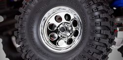 Repliki 1,0-calowych kół K10 High Trail Edition, to autentyczne repliki klasycznych 8-otworowych chromowanych kół. TRX-4M wykorzystuje standardowy sześciokąt HEX 7mm, dzięki czemu wymiana kół jest szybka i łatwa.