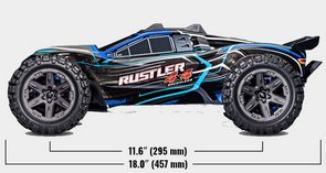 Rustler® 4X4 to doskonała maszyna zapewniająca szybkość, zwinność i niepowstrzymaną przyczepność z napędem na 4 koła. Pod wzmocnionym nadwoziem typu clipless, podwozie Rustlera jest niskie i szerokie, co zwiększa stabilność i precyzję prowadzenia.