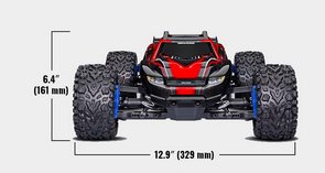 Szare koła Rustler'a 2.8′ RXT zapewniają prześwit i imponującą prezencję. Agresywne opony Talon EXT wbijają się w ziemię i trawę, zapewniając doskonałą przyczepność 4X4. Mieszanka opon EXT zapewnia dodatkową trwałość na nawierzchni dzięki unikalnej konstrukcji, która jest odporna na "balonowanie" przy dużych prędkościach.