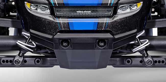 Wytrzymałe, wzmocnione zderzaki chronią podwozie przed uderzeniami. Specjalnie zaprojektowany przedni zderzak zapewnia wysoki kąt natarcia, który pozwala Rustlerowi z łatwością wspinać się i pokonywać przeszkody.