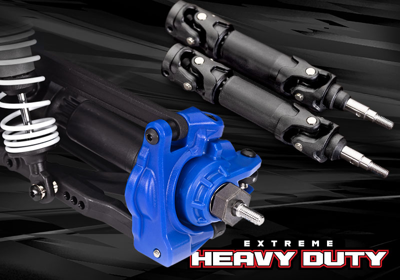 Zainstalowany zestaw Extreme Heavy Duty Upgrade Kit zastępuje kluczowe elementy układu napędowego i zawieszenia wzmocnionymi częściami wykonanymi z myślą o najwyższej wytrzymałości i trwałości. Od wahaczy HD po stalowe piasty kół, jest to najmocniejszy układ napędowy kiedykolwiek oferowany w modelach Rustler'a.