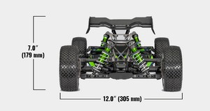 Jato 4X4 VXL jest osadzony nisko i szeroko, koncentrując swoją masę poniżej wałów napędowych, co zapewnia ostre jak brzytwa prowadzenie i doskonały rozkład masy. Aluminiowe amortyzatory GTR o długości XX z przodu i z tyłu maksymalizują przyczepność, utrzymując ultramiękkie opony Response Pro w stałym kontakcie z podłożem. Opcjonalny zestaw drążków skrętnych (sprzedawany oddzielnie) zapewnia płaskie pokonywanie zakrętów i doskonałe osiągi na torze.