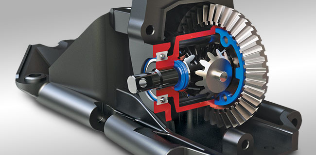 Wypełniony olejem przedni i tylny dyferencjał, posiada stalowe zębatki w celu uzyskania maksymalnej trwałości. Uszczelki silikonowe i pierścienie uszczelniające typu "X", pozwalają na regulację siły blokowania poprzez zmianę lepkości płynu wewnątrz mechanizmów różnicowych.
