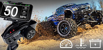 MODEL 77097-4: W pełni zmontowany, gotowy do jazdy z aparaturą zdalnego sterowania TQi™ 2.4GHz, systemem kontroli trakcji "TSM", elektronicznym regulatorem obrotów VXL-8s i malowaną karoserią ProGraphix®.
