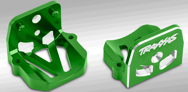 Aluminiowa osłona skrzyni biegów jest dopasowana kolorystycznie do ciężarówki i posiada laserowo wygrawerowane logo dla dodatkowego stylu. Starannie wyfrezowana z aluminium 6061-T6 pokrywa szczelnie blokuje się w podwoziu, aby utrzymać przekładnie w idealnym ustawieniu. Doskonale współpracuje również z zestawem szybkich przekładni nadbiegowych 7886 do ekstremalnych prędkości.
