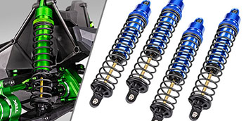 X-MAXX posiada cztery, wysokowydajne – olejowe amortyzatory GTX ™, wykonane ze stopu aluminium. Duża ilość zawartego w nich oleju absorbuje ciepło i powoduje większą wydajność pracy oraz zmniejsza zużycie amortyzatorów.