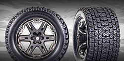 Duże koła RXT o rozmiarze 2,8″ zapewniają pojazdowi Rustler 4X4 Ultimate prześwit umożliwiający pokonywanie terenu i odrobinę stylu. Czarne chromowane wykończenia beadlock kontrastują z szarymi kołami, nadając im nowoczesny wygląd.