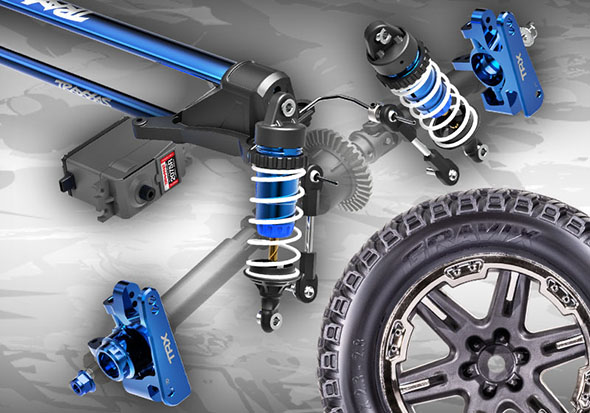 Kółka i drążki kierownicze Rustlera 4X4 Ultimate łączą wytrzymałość aluminium 6061-T6 ze starannie zaprojektowaną geometrią układu kierowniczego i zawieszenia. Anodowane na niebiesko wykończenie dodaje nowoczesnego stylu z laserowo wytrawionymi logo, aby pokazać oryginalne części Traxxas.