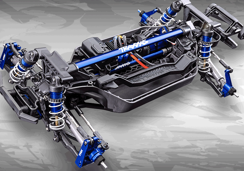 Usztywnienie podwozia z anodyzowanego aluminium zapewnia wzmocnienie strukturalne przy dużych obciążeniach i twardych lądowaniach. Wykonane z grubego wytłaczanego aluminium, owalne usztywnienie zwiększa sztywność skrętną i znacznie wzmacnia podwozie Rustlera 4X4 Ultimate, aby zmniejszyć jego elastyczność.