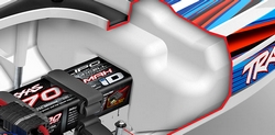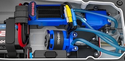 Opatentowana przez Traxxasa wodoszczelna komora odbiornika prowadzi przewody przez specjalną wodoszczelną uszczelkę. Niebieski O-ring umożliwia łatwy dostęp do odbiornika bez utraty jego właściwości uszczelniających.