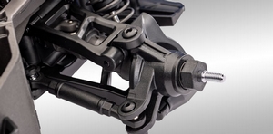 Mini Rally VXL wykorzystuje wąskie wahacze, aby uzyskać rzeczywisty rozstaw kół i realistyczne prowadzenie samochodu rajdowego. Konstrukcja z podwójnymi wahaczami utrzymuje prawidłową geometrię zawieszenia w całym zakresie ruchu. Podwójne połączenia ścinane i solidna konstrukcja maksymalizują wytrzymałość i trwałość.