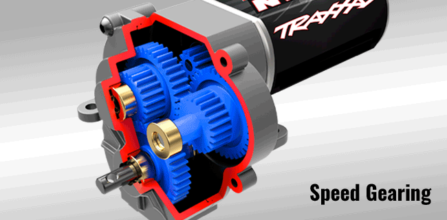 Modułowy zespół TRX-4M pozwala na wymianę różnych przekładni w celu zmiany charakterystyki pracy przekładni w niskim zakresie obrotów dla uzyskania płynnego momentu obrotowego przy niskich prędkościach lub zwiększenia wydajności w górnym zakresie obrotów dzięki opcji przekładni szybkiej. Rekomendowane - opcjonalne przełożenia, sprzedawane oddzielnie.