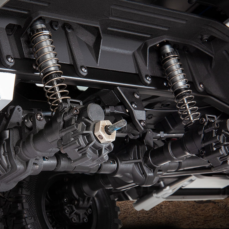 W pełni niezależna oś pośrednia zapewnia dodatkowy zestaw kół napędowych tam, gdzie są one najbardziej potrzebne do pokonywania przeszkody, które w innym przypadku byłyby niemożliwe. Napęd na 6 kół zapewnia również lepszą trakcję podczas pokonywania stromych wzniesień i większą przyczepność na luźnych i kamienistych nawierzchniach.