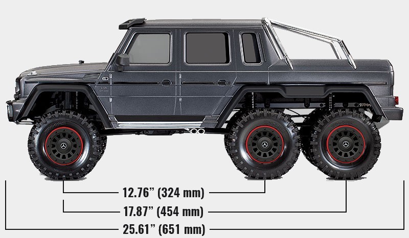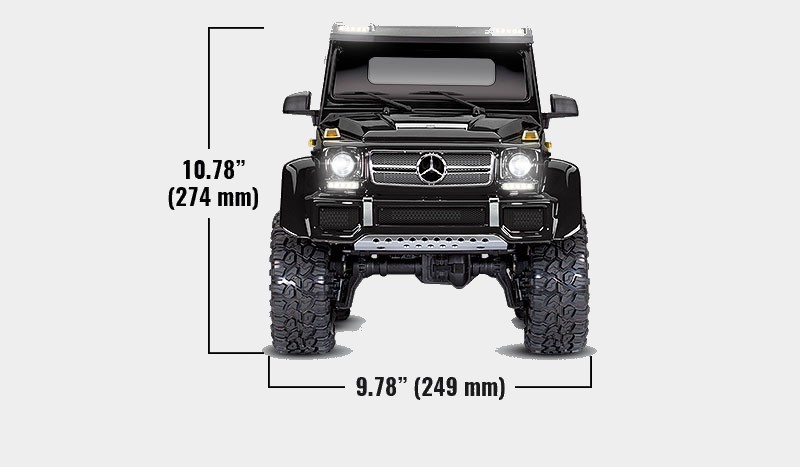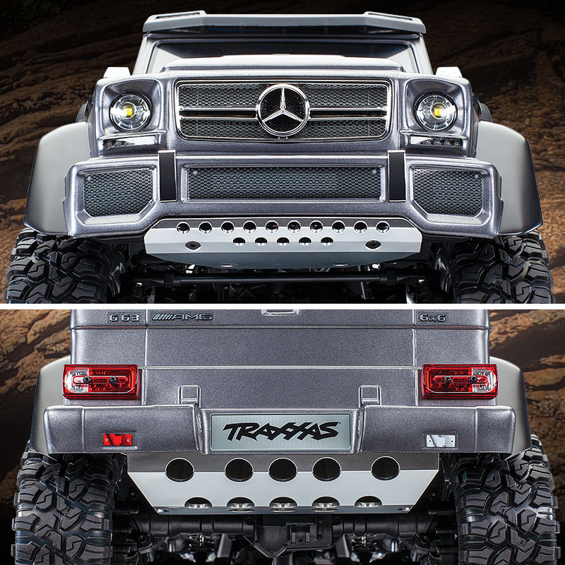 TRX-6 Mercedes-Benz G 63 AMG 6x6 wiernie odwzorowuje jeden z najbardziej ekskluzywnych i rozpoznawalnych pojazdów terenowych, jakie kiedykolwiek stworzono. Chromowane akcenty, formowane wykończenia i drobiazgowo dopracowane elementy oświetlenia podkreślają bogaty metaliczny lakier. Bezkompromisowa dbałość Traxxas o szczegóły sprawia, że TRX-6 jest najlepszym wyrazem piękna i siły.
