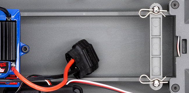 Rustler może pomieścić 6 lub 7 ogniwowe płaskie akumulatory lub 7 ogniwowe akumulatory garbowe, zapewniając maksymalną wszechstronność. Opcjonalny zestaw do rozbudowy baterii #3725 (sprzedawany oddzielnie) umożliwia montaż baterii o większych rozmiarach.