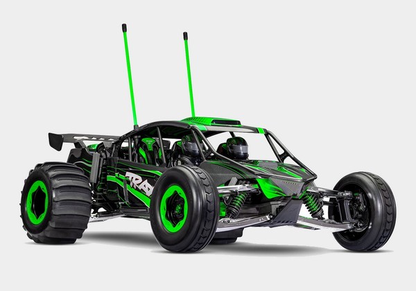 Traxxas dołożył wszelkich starań, aby dokładnie odwzorować pełnowymiarowy model Funco GTU Sand Car. Pro Scale Sand Car posiada pełne wnętrze z deską rozdzielczą i figurkami kierowców oraz replikami zdalnie sterowanych amortyzatorów 3,5″. Silnik to dzieło sztuki, składające się z 9 różnych części, w tym licencjonowanych filtrów powietrza R2C i doładowania Whipple.