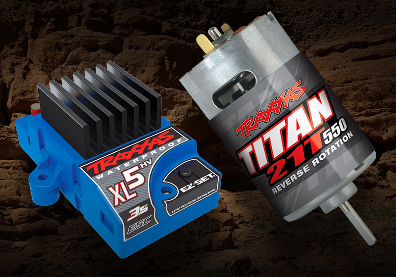 Wydajny regulator prędkości XL-5™ HV ESC obsługujący akumulatory LiPo 3s oraz silnik Titan® o 21 obrotach zapewniają nieograniczony moment obrotowy, pozwalający pokonywać najstromsze podjazdy i osiągać maksymalną prędkość na płaskim terenie. Ten wydajny system zapewnia do 2 godzin pracy z akumulatorem Traxxas 3s 5000 mAh LiPo!