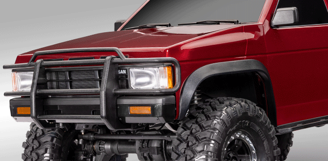 TRX-4 Pathfinder ma replikę czarnej przedniej kratki ze zintegrowanymi soczewkami i zderzakiem, które nadają mu solidny wygląd. Szczegółowe reflektory i tylne światła są kompatybilne z opcjonalnym zestawem świateł Pro Scale Light Kit 1(sprzedawanym oddzielnie), który zapewnia jeszcze większy realizm.