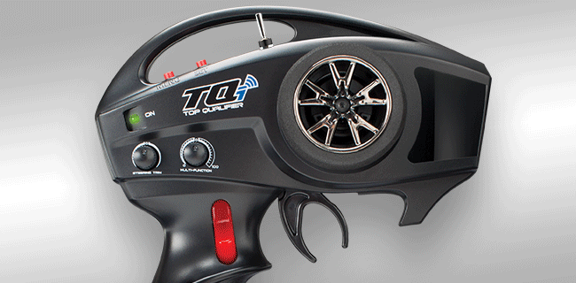 Radio TQi posiada tempomat do długich tras. Ustaw prędkość za pomocą nadajnika, a następnie użyj pokrętła wielofunkcyjnego, aby ją precyzyjnie dostosować. Przełącznik kołyskowy zamontowany na uchwycie pozwala wybrać wysokie lub niskie przełożenia dostosowane do terenu, a oddzielny przełącznik dwustabilny włącza lub wyłącza blokadę mechanizmu różnicowego — wszystko to w trakcie jazdy.