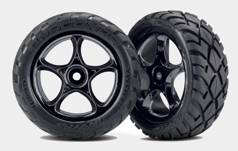 Jeśli Twoje ulubione miejsce do wyścigów to asfalt, możesz przekształcić Bandit’a w agresywny samochód na twardą powierzchnię. Umożliwiają to koła z zaopatrzone w bieżnik ulicy. Te lepkie, wysokiej przyczepności opony są idealne na twardą nawierzchnię. Sprawdzona konstrukcja bieżnika Anaconda posiada niewiarygodną przyczepność i dużą wytrzymałość. Koła mają przyklejone opony i są gotowe do natychmiastowego zainstalowania.