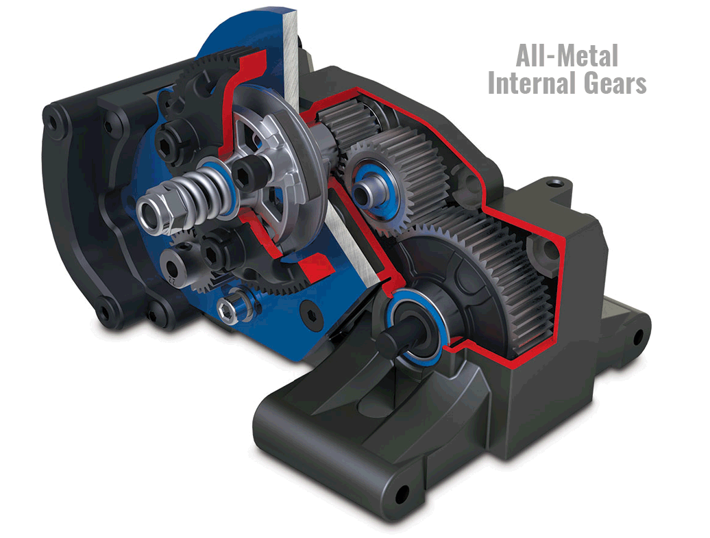 Przekładnia Magnum 272R wykorzystuje nową - niskoprofilową obudowę z solidną jak skała aluminiową płytą silnika o grubości 3.2mm. Hartowany - stalowy górny wał i metalowe koła zębate, przesyłają moc do uszczelnionego, wypełnionego silikonem 4-biegowego mechanizmu różnicowego dla zapewnienia maksymalnej trakcji. Zdejmowany panel zapewnia łatwy dostęp do mechanizmu różnicowego w celu dostrojenia go do płynów o różnej lepkości. Magnum 272R, pierwotnie opracowana dla Drag Slash'a, zapewnia wydajność na poziomie konkurencji dla Twojego Slash'a VXL