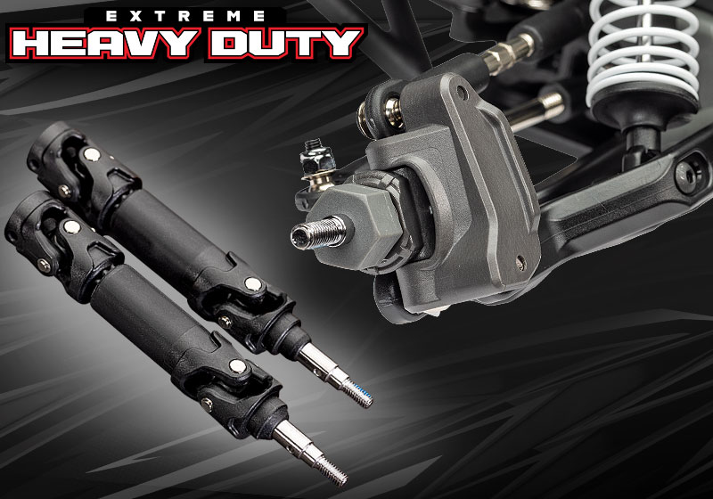 Fabrycznie montowane wsporniki osi Extreme Heavy Duty, bloki kółek i bloki kierownicy zostały wzmocnione dodatkowym materiałem, aby zapewnić Slashowi VXL najwyższą wytrzymałość i trwałość. Dzięki dodaniu wahaczy HD wykonanych z najtwardszego materiału kompozytowego Traxxas, jest to najmocniejsze zawieszenie kiedykolwiek oferowane w Slashu 2WD.