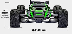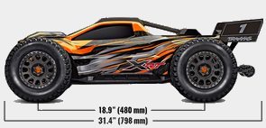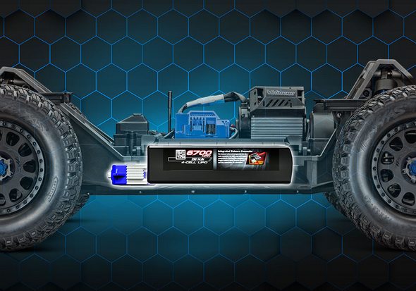 Projekt podwozia XRT jest skonfigurowany tak, aby obniżyć środek ciężkości dla lepszej obsługi i stabilności. Dwa pakiety napędowe 4S/6700mAh i serwomechanizm sterujący, są umieszczone tak, aby przenieść masę jak najniżej i zapewnić ochronę dla tych krytycznych komponentów.