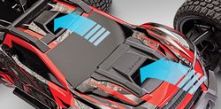 Wloty powietrza są w pełni zintegrowane z ramą nadwozia XRT, co zapewnia maksymalną wytrzymałość i zapobiega uszkodzeniom. Dolny wlot posiada nawet wewnętrzną kratkę, która utrzymuje kamienie i inne zanieczyszczenia z dala od podwozia i elementów układu kierowniczego.