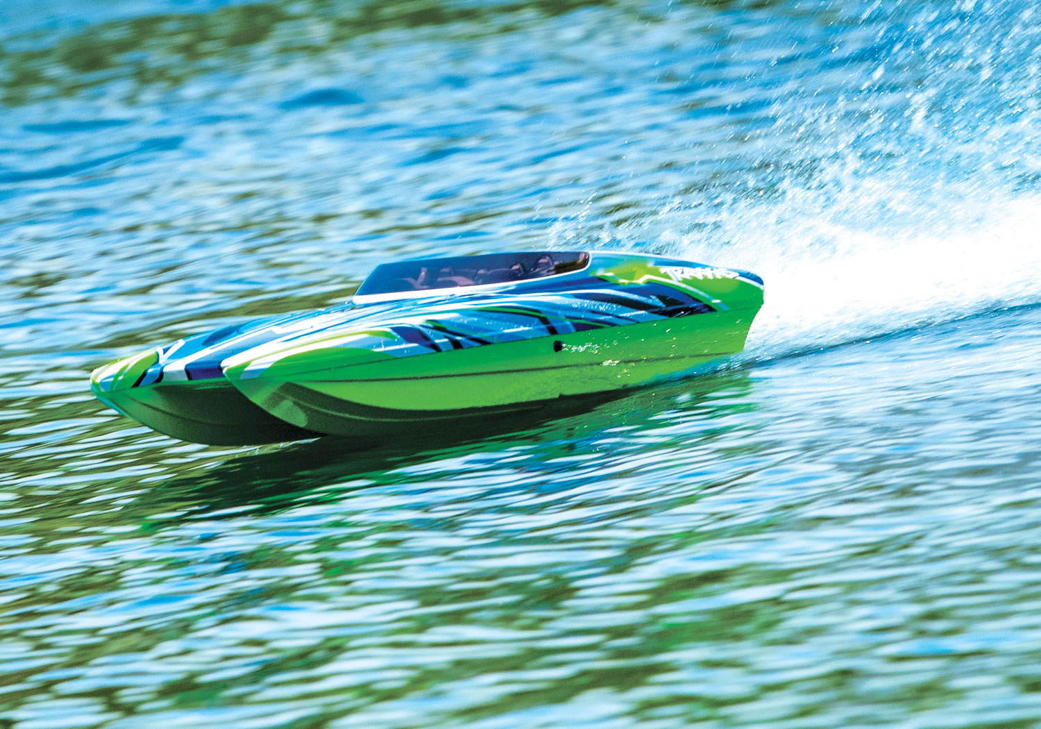 Model łodzi wyścigowej Traxxas’a z napędem bezszczotkowym.