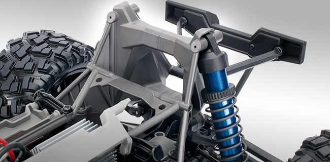 Do X-MAXX’a zaprojektowano zawieszenie z bardzo dużym skokiem, małym promieniem skrętu oraz dużą wytrzymałością.