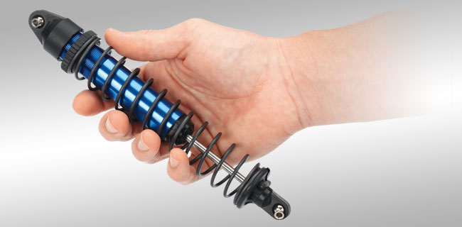 X-MAXX posiada cztery, wysokowydajne – olejowe amortyzatory GTX ™, wykonane ze stopu aluminium. Duża ilość zawartego w nich oleju absorbuje ciepło i powoduje większą wydajność pracy oraz zmniejsza zużycie amortyzatorów.