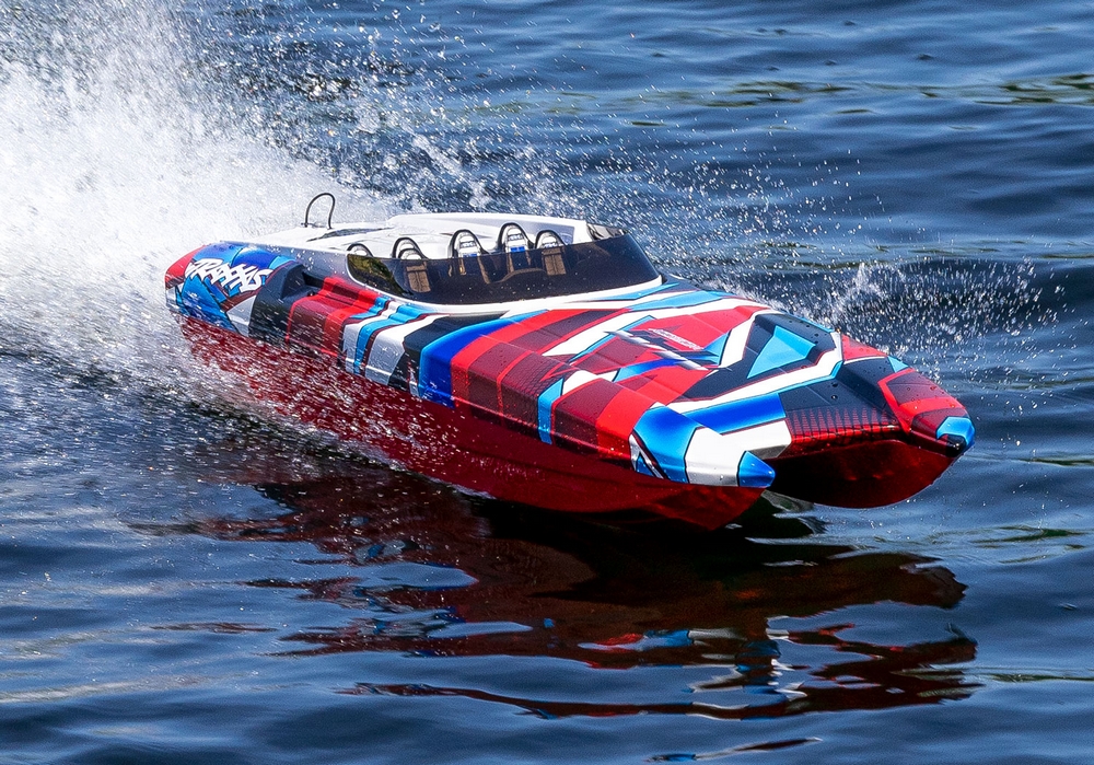 Model łodzi wyścigowej Traxxas’a z napędem bezszczotkowym.